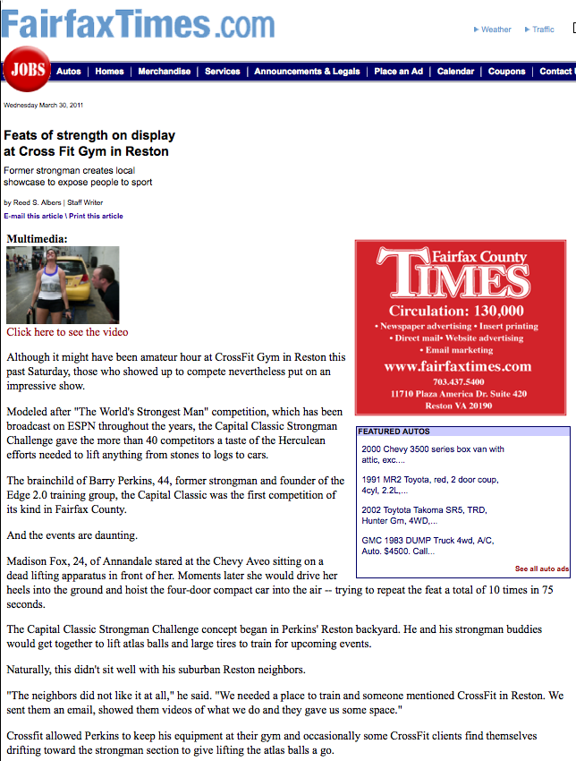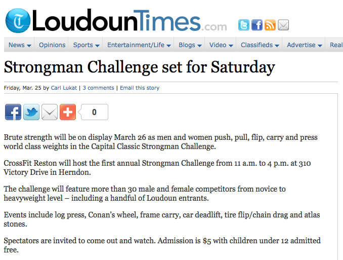 The Reston Patch stops by to check out the Strongman 201 Clinic 07.23.11