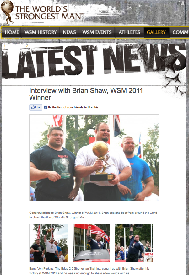 The Edge’s own Barry Von Perkins did an interview with The World’s Strongest Man 2011 Winner Brian Shaw: